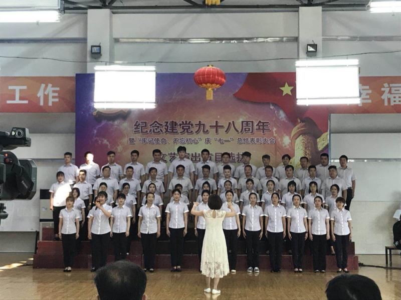 身为一名光荣的热力人,在党的生日来临之际,我作为一名音乐类的学生,想用自己所学为集团奉献出自己一份力量,积极报名参加了合唱队。利用休息的时间加班加点的进行训练,跟着领唱进行一次次的学习、一遍遍的磨合将自己融入合唱队中。在6月14日上午的节目选拔中,我们用嘹亮的声音,整齐划一的动作,征服了所有的人视听,取得了所有参赛队伍的最高分——“98.12分”。