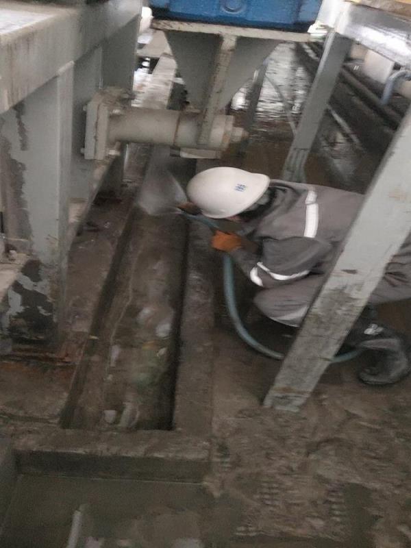 目前,和仁公司环保处正在对停运的真空脱水机展开细致的清理工作,工作人员认真冲洗真空皮带机下部水槽卫生,对排浆管道、滤布和旋流器全部清洗干净。经过运行人员一周的努力清洗,水槽、管道、滤布、旋流器,均清理完成且达到要求。