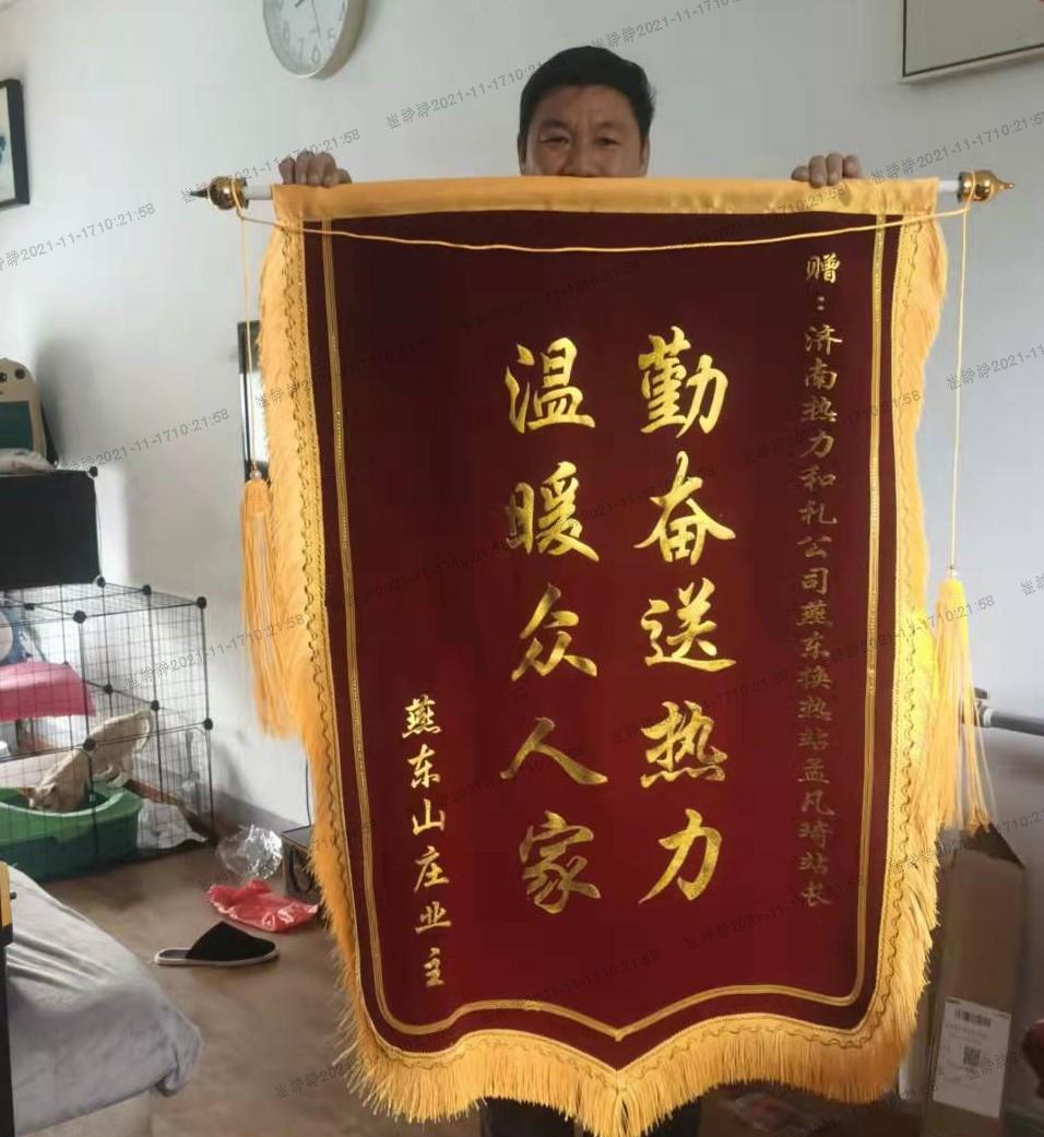 在热调试期间,和礼公司供暖管家奔波在供暖一线,通过和用户的配合,对一次网、二次网进行调节,更好地保障用户用热。供暖管家为民服务的行为感动了用户,燕东山庄中心站站长孟凡琦收到了用户送来的“勤奋送热力,温暖众人家”的锦旗。