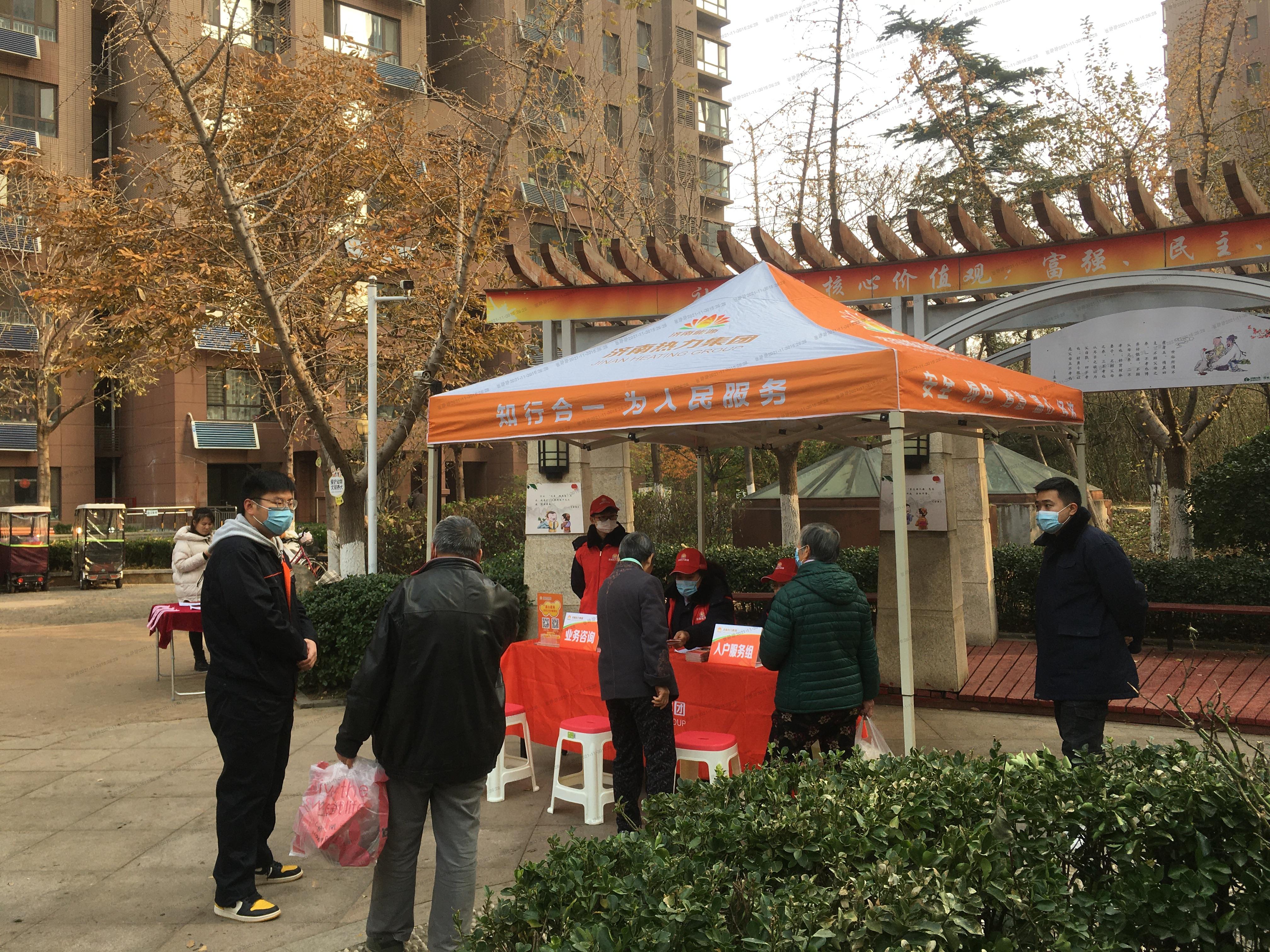 在寒冷的清晨,和安公司供热处工作人员早早的便来到了泉景天沅鑫园,开展“暖万家”入社区活动,寒冷的广场瞬间变得热闹起来。