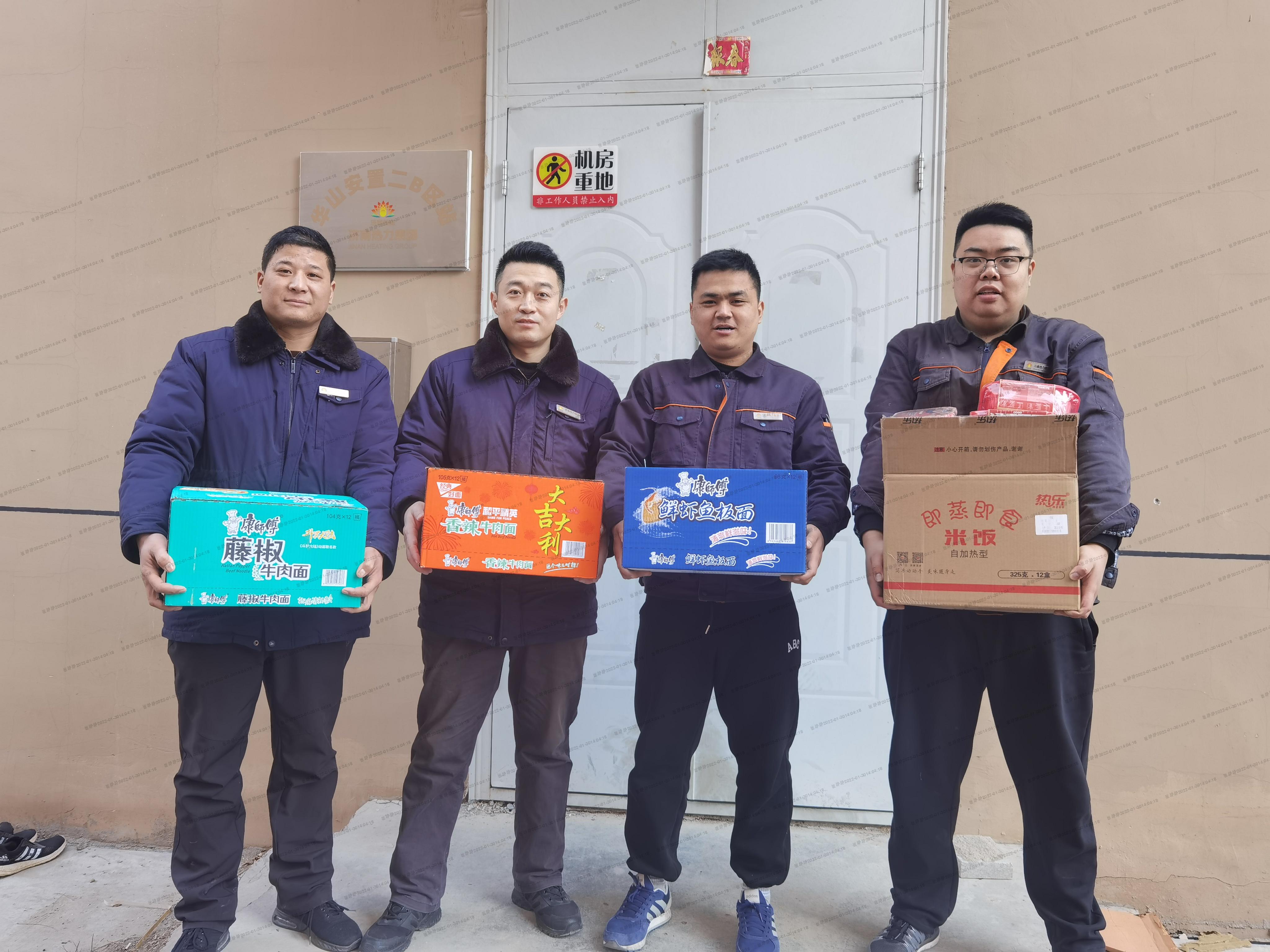 和茂公司所管辖区实际供暖面积400万平方米,共61座换热站,为了保障和茂所辖片区的正常运行,和茂公司一线工作人员春节期间照常上班。1月29日,和茂公司领导为一线员工们发放了集团工会提供的便捷食品。