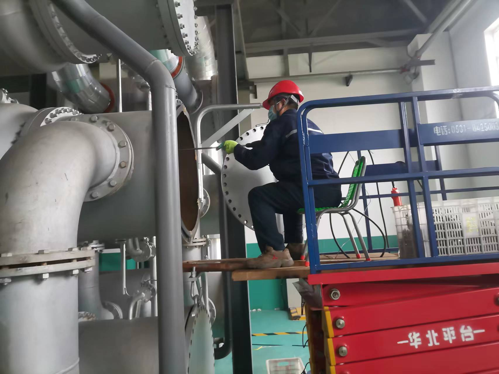4月开始,和勇公司就组织召开多次关于检修的会议,详细讨论并安排了检修工作,广泛听取大家对隐患提出的整改提议,尽早制定了各个处室的检修项目与实施方案。在本次检修进程中,供热六处按照计划完成了3组管壳式换热器清理工作,完成了站内大小阀门润滑保养工作,完成地下井室的清理工作,站内监控设备更换也在逐步开展,现已完成监控设备排线工作,同时配合热泵机组厂家对热泵机组停机后各项指标进行了检查,并出具检查记录。此外,六处员工又根据检修进度,还对未列入检修项目的各个供暖设备进行了一次清扫,就下一步的安全生产奠定了良好基础。检修同时又要兼顾安全,每次检修工作前都召开一次会议,每次会议都着重进行了安全教育工作,部署或重申了安全防护的重要性,认真交代工作中危险因素及防护措施,李杰主任现场指导,对一些违规操作严厉禁止,守住安全底线,切实把安全放在第一位。检修工作中,着重对人员进行较为科学合理的安排,根据检修项目及进度配备适宜的人员,避免交叉作业,李杰主任负责检修的质量与安全监督,保证了检修工作安全顺利进行。