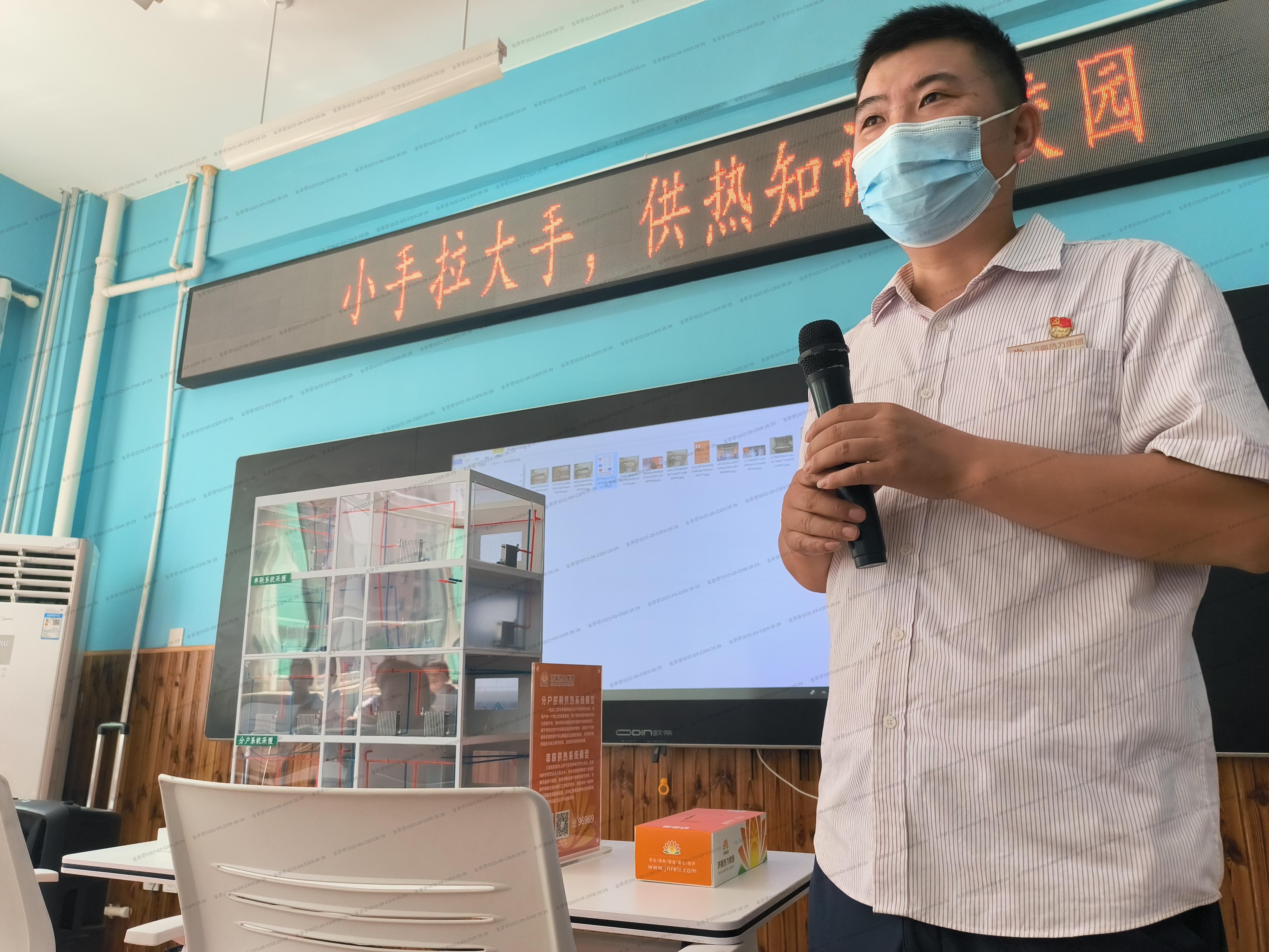 为做好供热知识的科普宣传,让学生更多地了解供热常识,增强学生用热安全意识,ok138太阳集团和勇公司政工宣讲员带着学生们观看了ok138太阳集团的宣传片及供热常识小视频,并由供暖管家结合供暖系统模型,通过生动有趣的课堂形式向同学们讲解管网的运行方式、家中供热设施注意事项等内容。