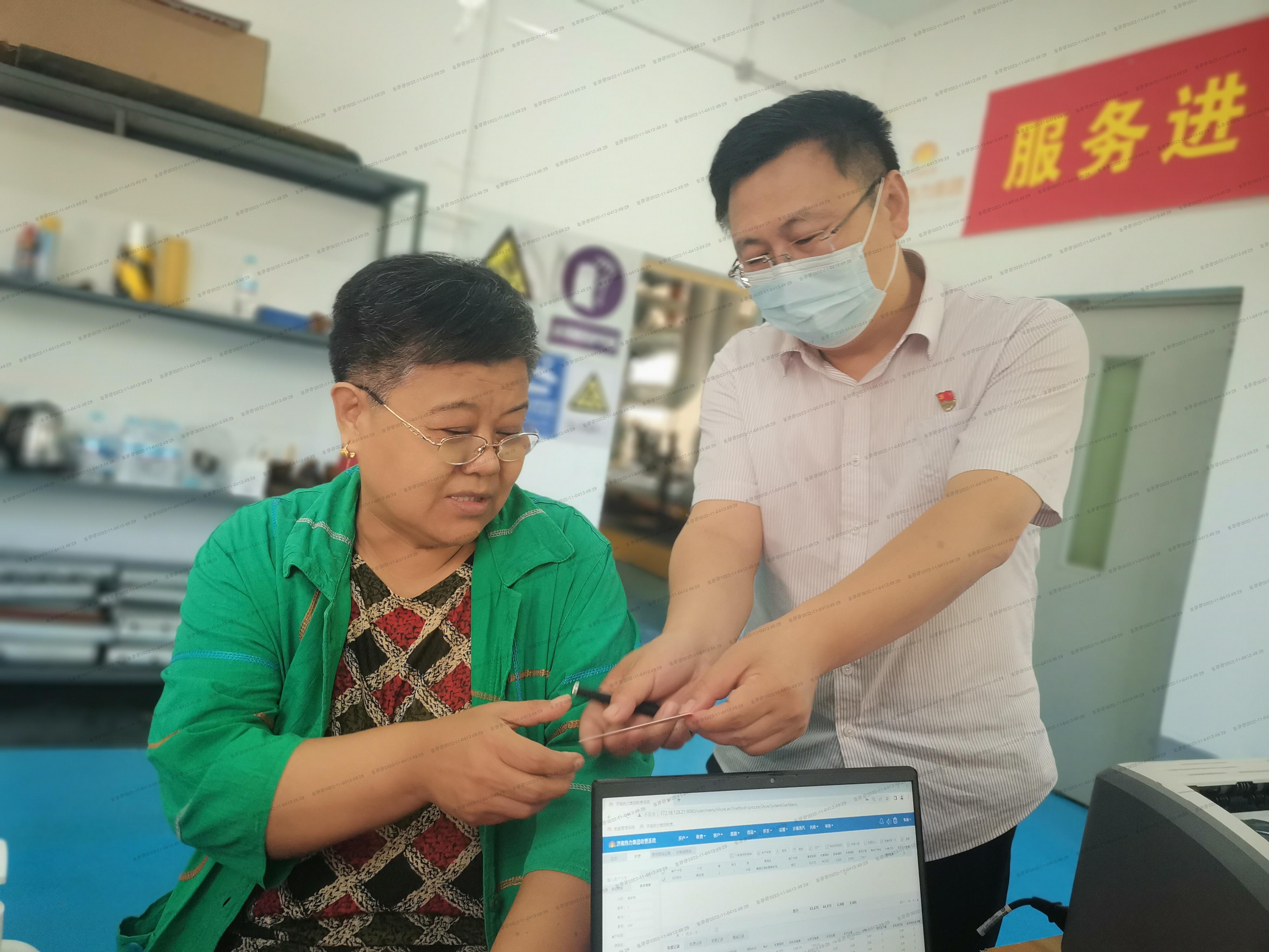 30日一早,和康公司志愿者在顺安苑小区换热站前支起帐篷,摆上桌子,不一会,桌子前就排起了长队,前来缴费的居民络绎不绝。“小伙子,你查查我家今年交多钱”,“我家今年想报停,怎么办理啊”,“我想在微信上缴费,不知道怎么操作”。面对居民们的询问,供暖管家杨广耀都耐心解答。“这是我的名片,您有任何供暖问题都可以联系我。”“真是感谢咱ok138太阳集团,每年都想着我们,来帮助我们缴费。小伙子服务也好,每年供暖前都会来家里帮着查看暖气,服务非常周到。”家住顺安苑小区4号楼的刘大爷表示。