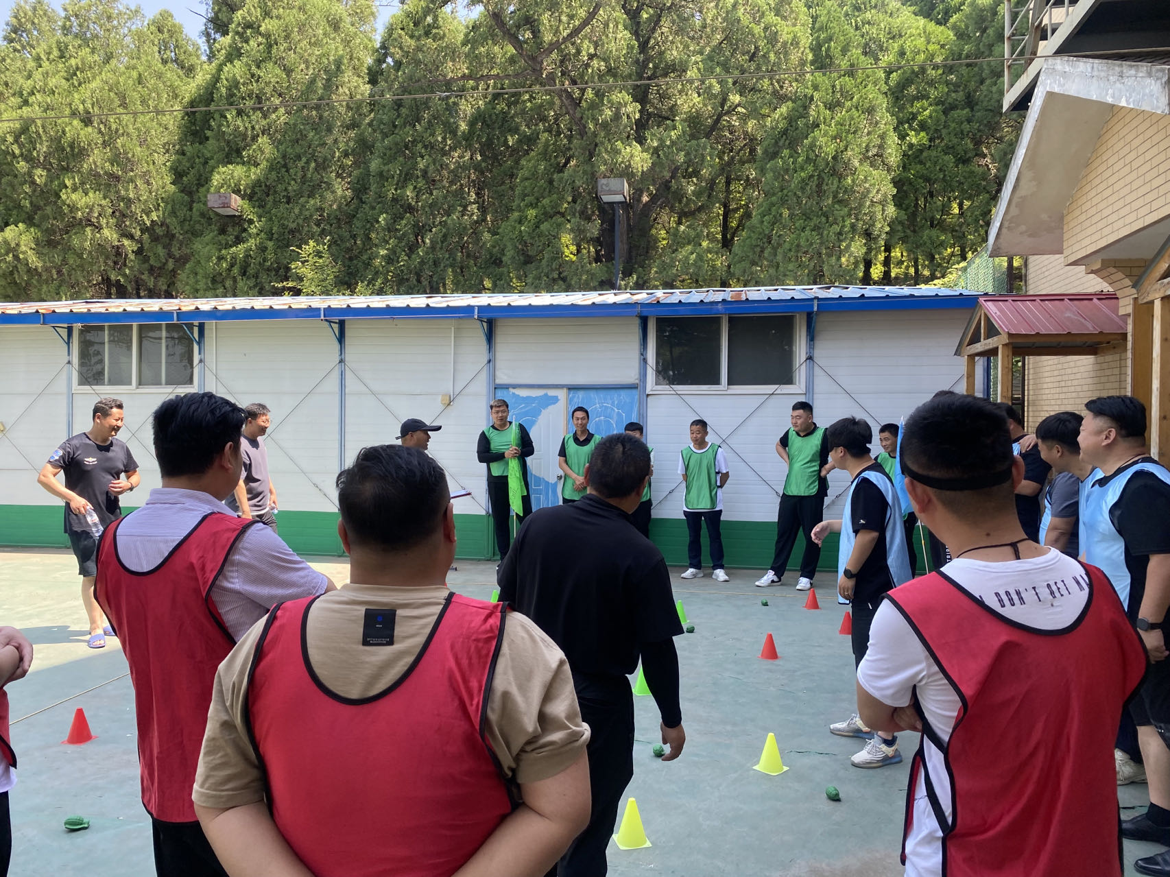 烈日炎炎下,拓展训练拉开了帷幕。经过教练一番简单的介绍之后,所有的参训人员被分成了两组,由大家举荐出两名队长。集思广义后,拥有极富创意的队名及响亮口号的两个小团体,就这样开始了之后的培训,队长要带领全体队员共同完成由教练安排的各种项目课程,保证不落下每一位队员。做着各种游戏,大家的热情很高涨,欢声笑语充斥在训练场中