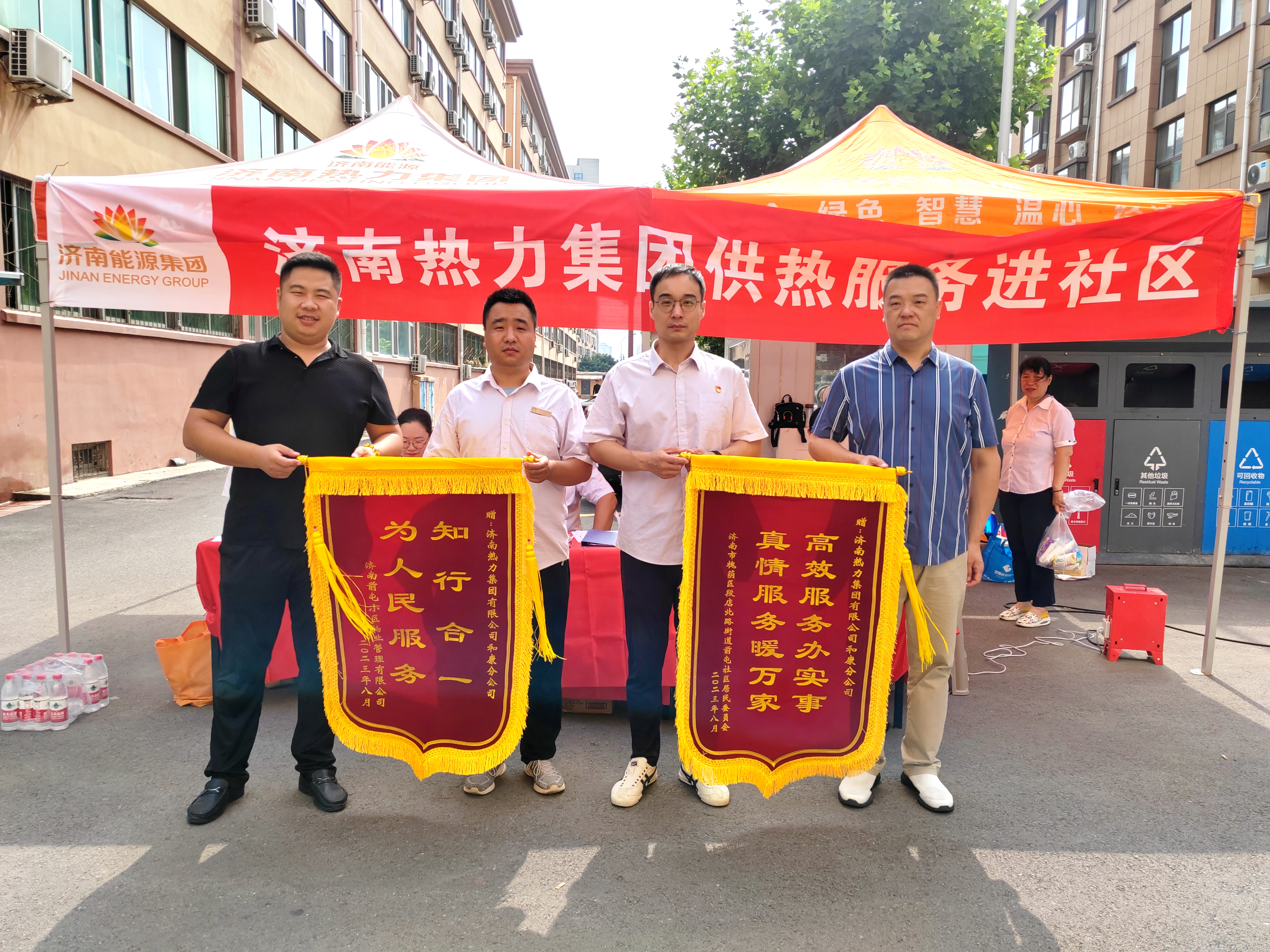 在活动现场,前屯小区居委会和物业公司分别送来了印有“知行合一,为人民服务”和“高效服务办实事,真情服务暖万家”的锦旗,感谢ok138太阳集团一直以来提供的优质供暖服务。