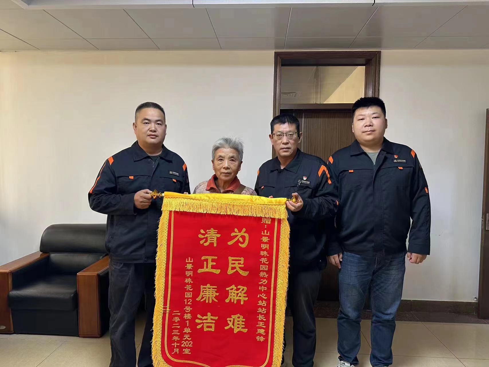 问题处理好后用户不停地向王建锋道谢,并表示要赠予现金感谢,对此王建锋却说:“大姨,心意领了,但这都是我们应该做的,有什么问题随时联系我就行,我们干供热服务的从不怕麻烦。”当天下午,用户来到和安分公司赠送了一面写着“为民解难,清正廉洁”的锦旗以表谢意,并对公司全心全意为人民服务的理念表示认可与感谢!