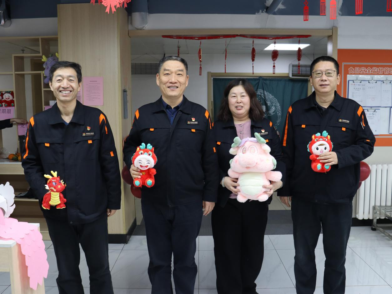 金龙贺岁,辞旧迎新。在新春佳节即将来临之际,恰逢小年,集团党委委员、纪委书记邵东同志来到和礼公司莲花山食堂与职工们开展“迎新春”系列活动,为广大职工致以节日的祝福。