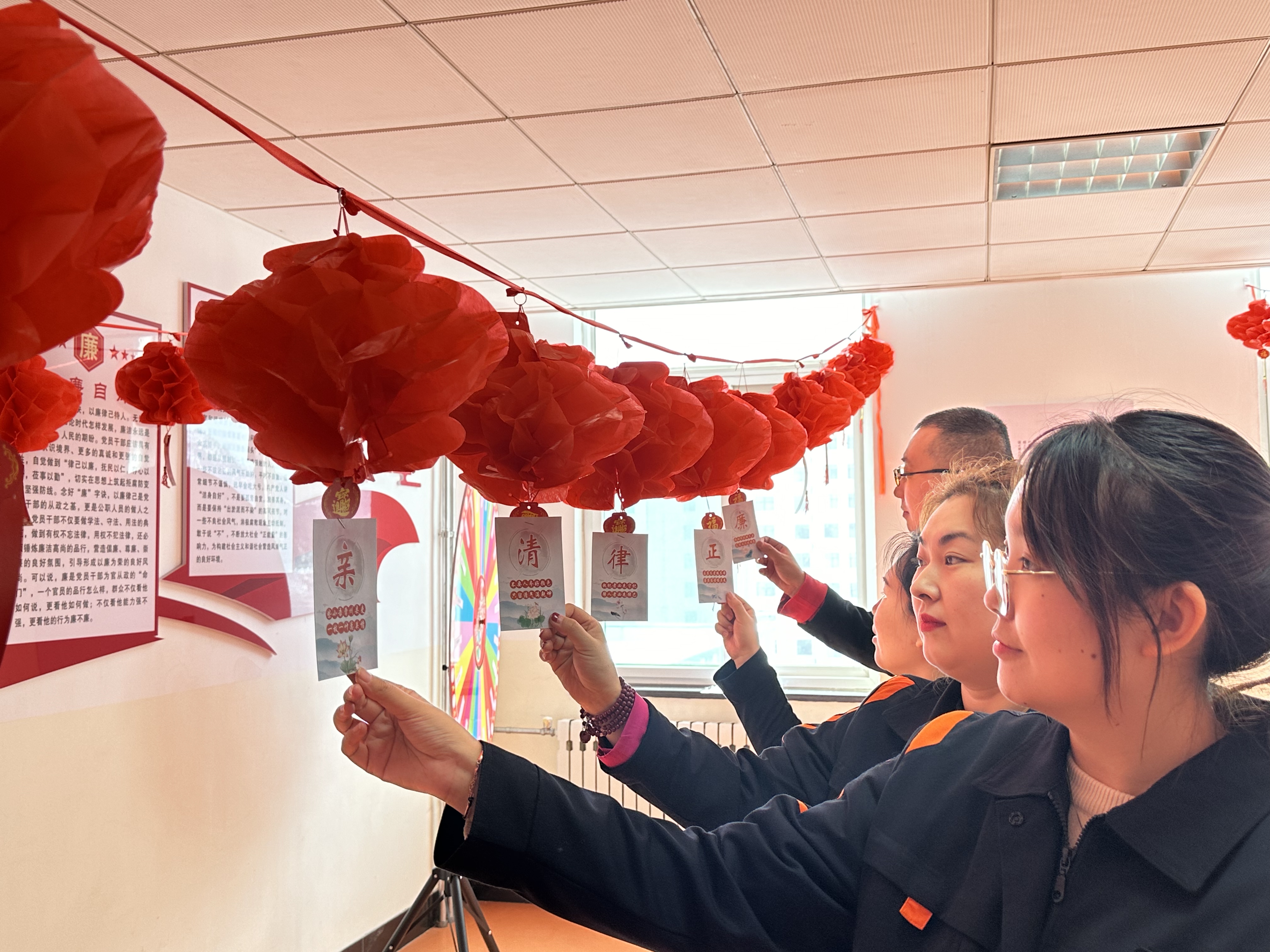 张灯结彩过十五,欢天喜地闹元宵。为大力弘扬优秀传统文化,丰富职工精神文化生活,营造健康向上、清风正气的节日氛围。2月22日上午,ok138太阳集团和礼分公司开展以“清风廉洁贺元宵”为主题的庆元宵节系列活动,此次活动充满欢乐与和谐,为职工带来了喜气洋洋的节日氛围。
