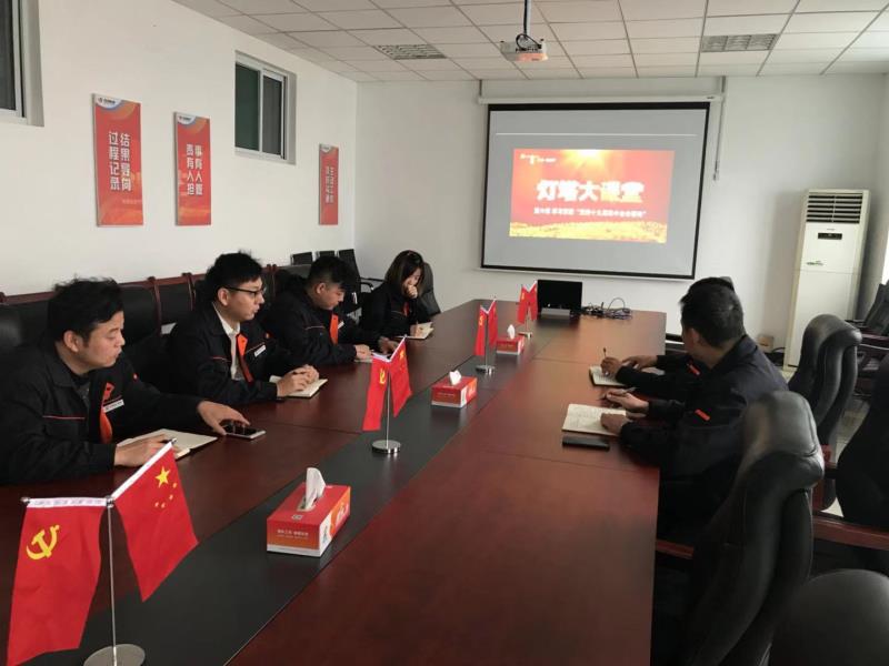 为深入学习领会十九届四中全会精神12月9日上午,山东德和地热开发有限公司党支部以“主题党日”形式组织党员收看学习以“学习贯彻党的十九届四中全会精神”为主题的灯塔大课堂第六课内容。