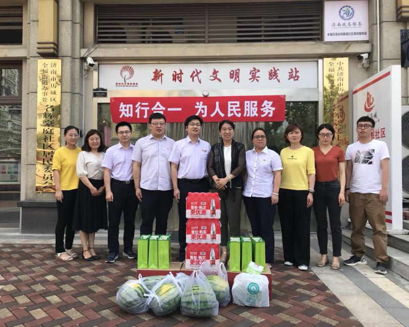 为进一步贯彻落实上级党委关于企事业单位党组织、党员到社区党组织“双报到”工作部署要求,不断深化和拓展服务内容,更好地实现企业与社区共驻共建。7月14日上午,山东和光党支部书记周旭带领党员干部走进名辉豪庭社区,开展“双报到,共服务”送清凉活动,为社区一线工作者送上绿豆、矿泉水等防暑降温物品。