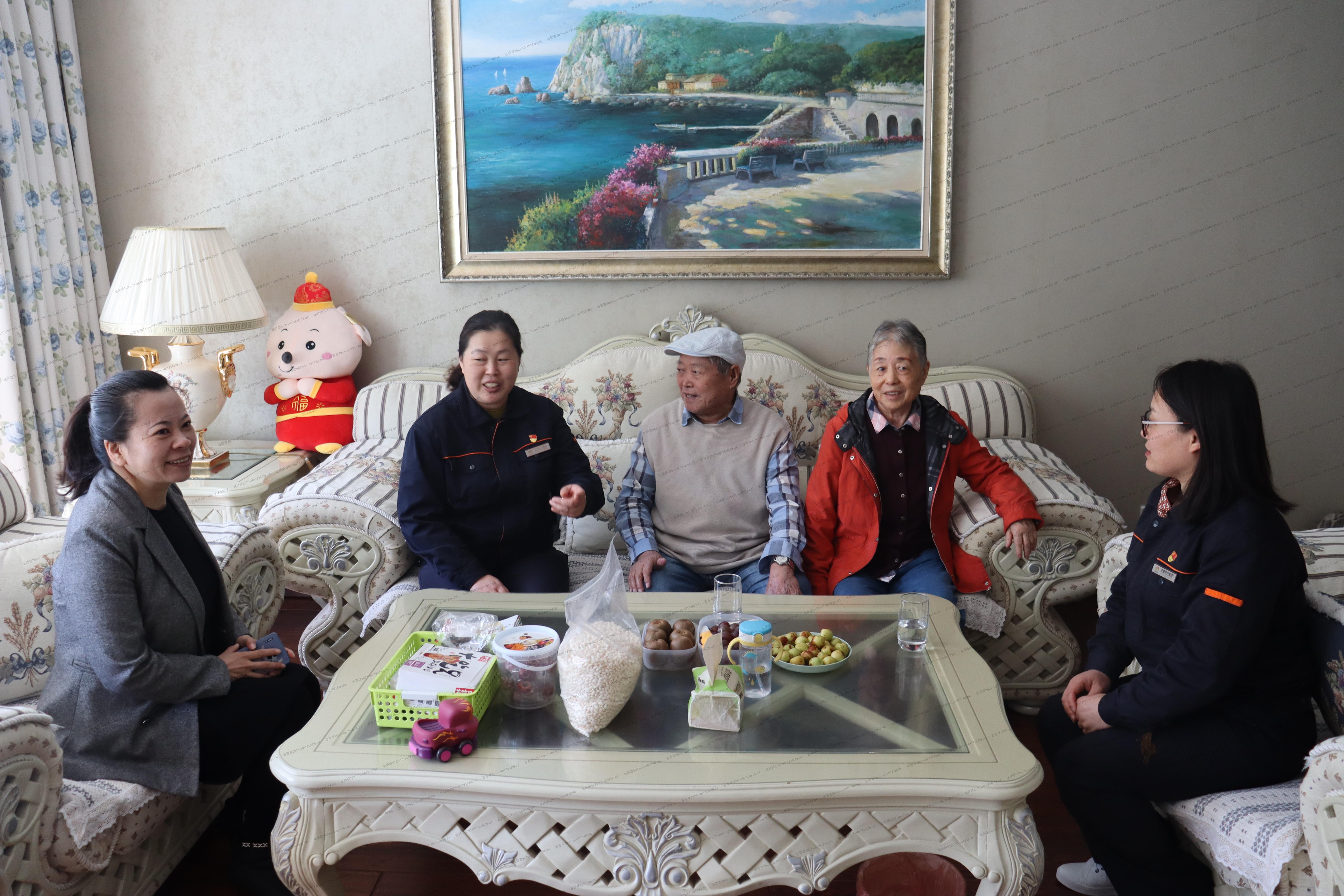 在重阳节到来之际,为传承党的红色基因,践行新时代使命担当,和礼公司联合和融公司、转山西路社区党委于10月12日上午开展“爱在重阳,我为老人办实事”主题系列活动,前往荷兰庄园小区看望老党员邓洪玉老两口。