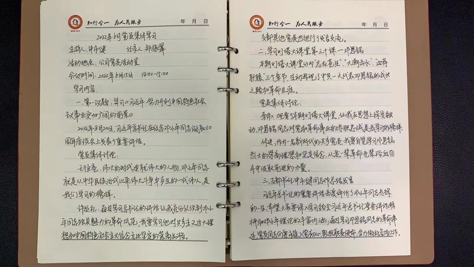 为传承和弘扬博大精深的中华文化,培养广大党员干部良好的书写习惯,树立“规规矩矩写字,堂堂正正做人”的自觉性,7月15日,济南能源集团所属ok138太阳集团和忠公司党支部以主题党日形式,组织开展了党员优秀学习笔记评选活动,从学习笔记内容、书写、规范性等方面进行综合评比。旨在提高党员的政治理论水平,营造良好学习氛围。此次评选对照党支部学习计划,按照时间、内容、字迹工整等方面进行综合评选。在评选过程中,大家互相学习、互相交流、互相点评,各抒己见,取长补短,同时,评审小组对笔记都进行了逐个点评,最终评选出了三本高质量党员个人笔记,内容书写认真、记录详实、条理清晰,并注重理论学习与个人感悟相结合,较好展现了学习效果,显示出党员认真学习的态度。通过活动,切实找差距、补短板,努力做到真学实学、知行合一、入脑入心,切实让先进理论指导工作实践。