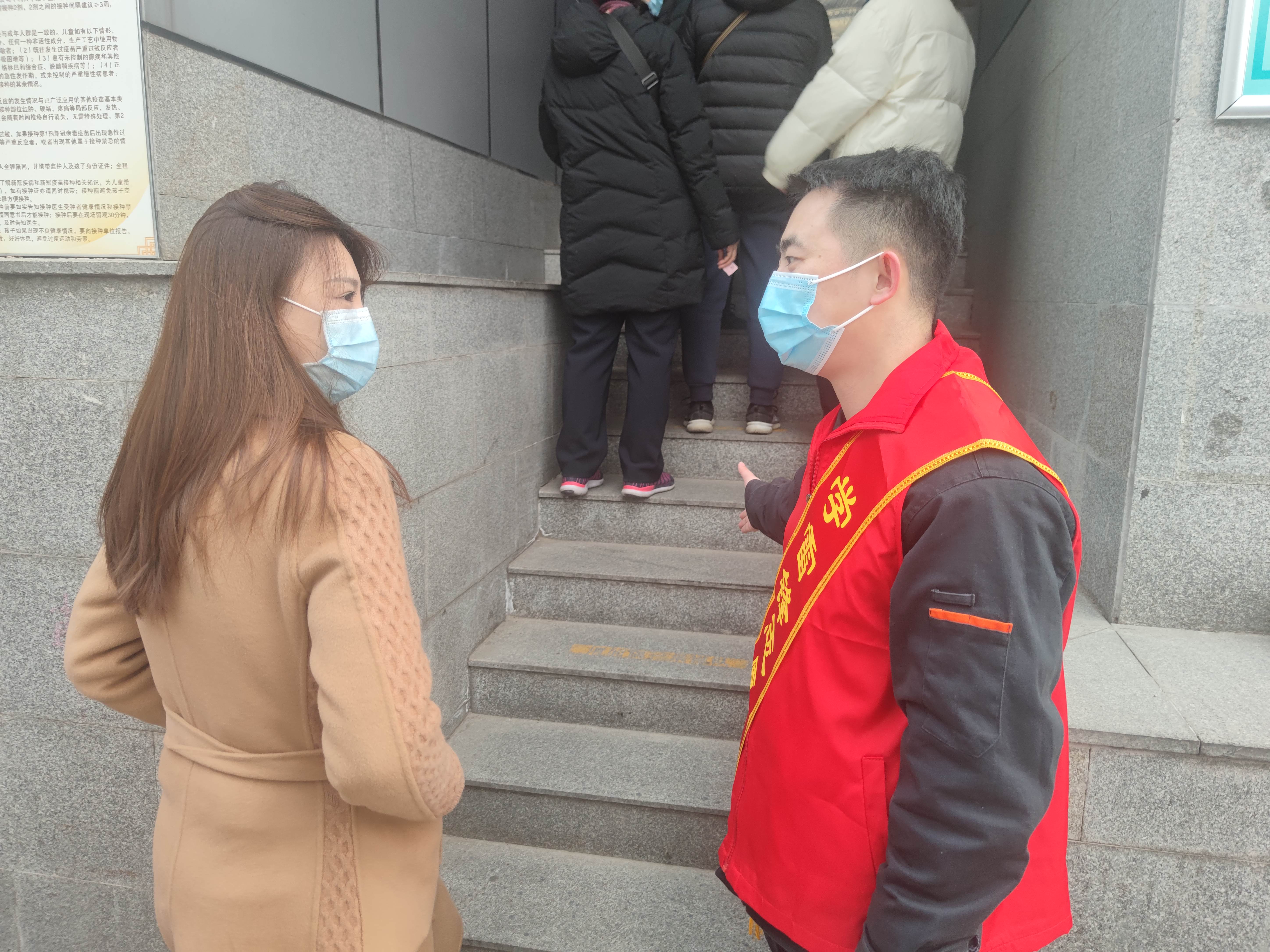 记者在接种点看到,热力集团志愿者们统一穿着社区提供的红色志愿者马甲,大家各司其职、细心疏导,有条不紊的引导疫苗接种人员依次排队、测量体温、扫码登记、填表等待、接种留观等,为前来接种的群众们耐心提供引导、接待、答疑等服务,积极营造了文明有序的接种环境。