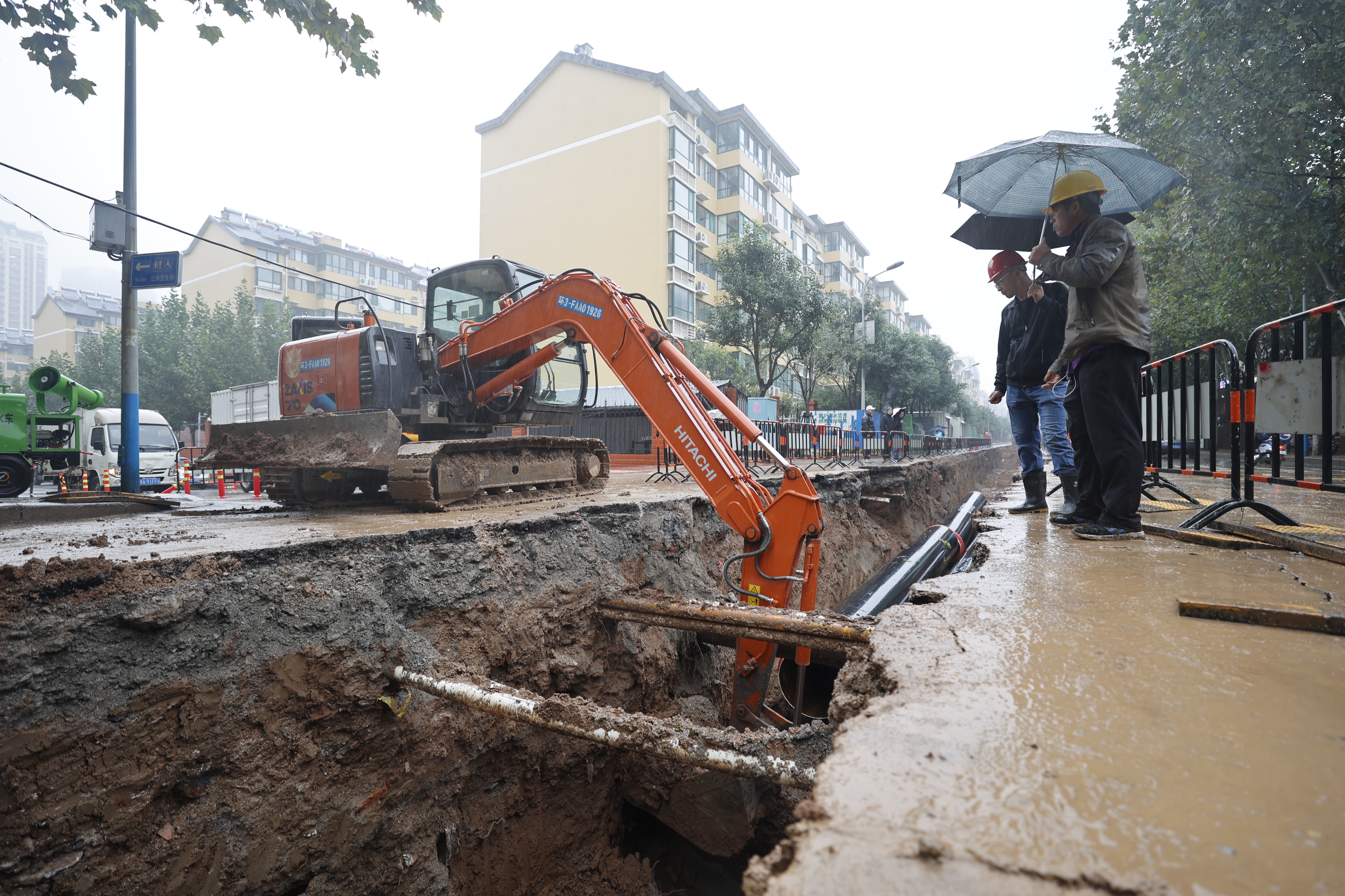 自国庆节期间开工建设以来,项目专班30余人24小时轮班协调推进施工进度,全员本着“今日事今日毕、明日事今日谋”的工作态度,利用节日期间开足马力抢工期。施工期间阴雨天气连续不断,但丝毫没有影响高温水管网新建项目现场施工热度。在确保安全、降噪的前提下,围绕项目工期既定目标,项目全员争分夺秒坚持施工,力争把天气造成的工期影响降到最低。同时,实行“一把手挂帅”责任制,层层分解,层层落实。在项目工作群中,每天实时更新最新施工动态。为保证文明施工,项目部科学组织,强力推进,现场建设了一处防噪音棚,做到施工干扰小、影响小;采取“错时工序法”,白天夜间施工满负荷运作,力保项目施工进度。