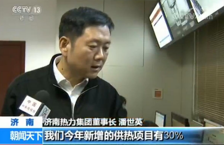 11月17日,中央电视台《朝闻天下》和《新闻直播间》节目播出了《清洁取暖开启绿色新生活》节目,介绍国内部分省市在推进清洁取暖方面所作出的努力,其中以《山东济南大规模推进煤改电、煤改气》为题报道了济南在推进清洁取暖方面的努力和成绩。集团公司党委书记、董事长潘世英接受了央视记者的采访。潘董介绍,去年供热基本上全是燃煤,或是工业余热。而今年新增的供热项目有30%用的是清洁能源,集团公司现在这张供热网就变成了一个多能互补的能源互联网;在原济南钢铁厂的生活区里,集团公司建设的十几台空气源热泵刚刚安装完成,替代了用了几十年的煤锅炉。