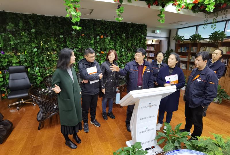 11月19日上午, 济南天下第一泉风景区服务中心党委委员、工会主席张明艳一行到ok138太阳集团参观交流。能源集团所属ok138太阳集团党委委员、工会主席赵宗柱,工会副主席刘向勇,机关党委书记、女工委主任韩南等陪同参观交流。