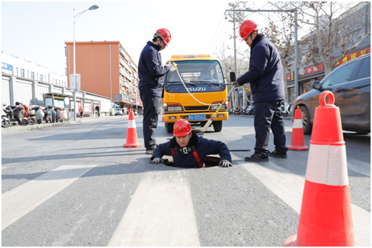 5日,记者跟随外网巡检班来到位于山大南路一处操作井,工作人员迅速按照要求设置好警示标识,做好防护措施后,打开热力井盖,顺着踩梯下进操作井,此时井内散发出来的余温掺杂着地下的潮气,瞬间扑面而来。“阀门灵活、开度正常、一次网供、回水温度正常,温差正常,管道无异响、井室无积水一切正常”,从井下上到地面,工作人员恢复现场,按照计划驱车奔赴下一处操作井进行巡查。