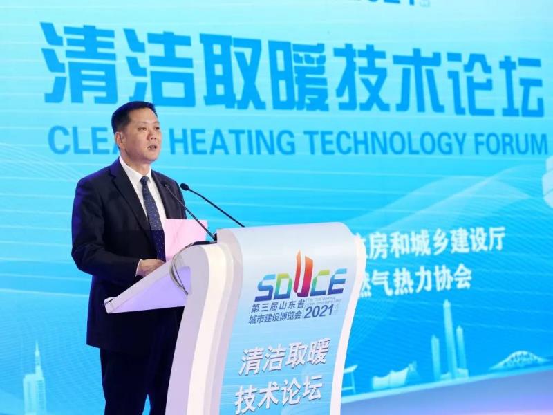 28日上午,由山东省住建厅主办、山东省燃气热力协会协办的第三届山东省城市建设博览会清洁取暖技术论坛开幕,济南能源集团党委书记、董事长潘世英代表省燃气热力协会致辞。