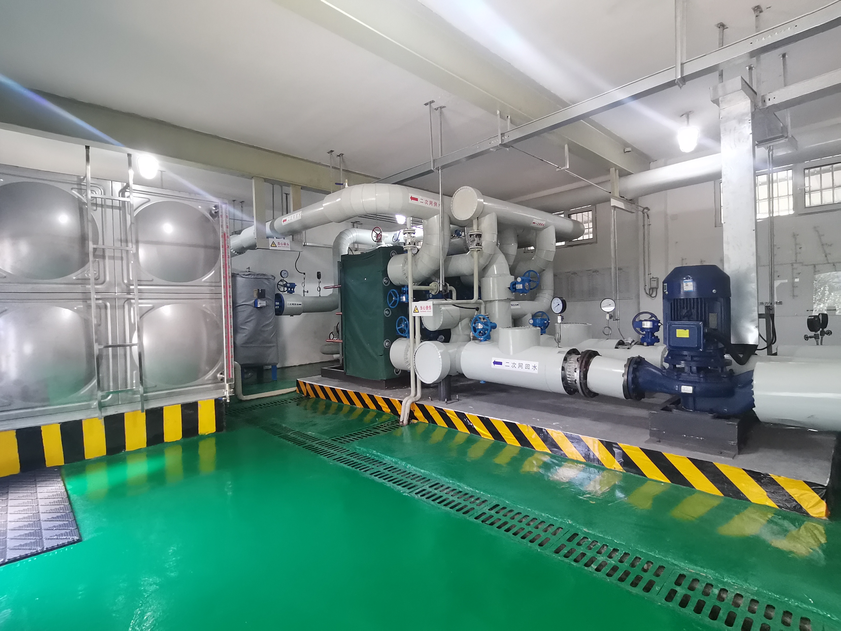 走进子木花园换热站,绿色的地面干净得像一面镜子,不大的室内空间“五脏俱全”。依托合理的布局,尽管满目全是设备,工作人员在其中依然行动自如。