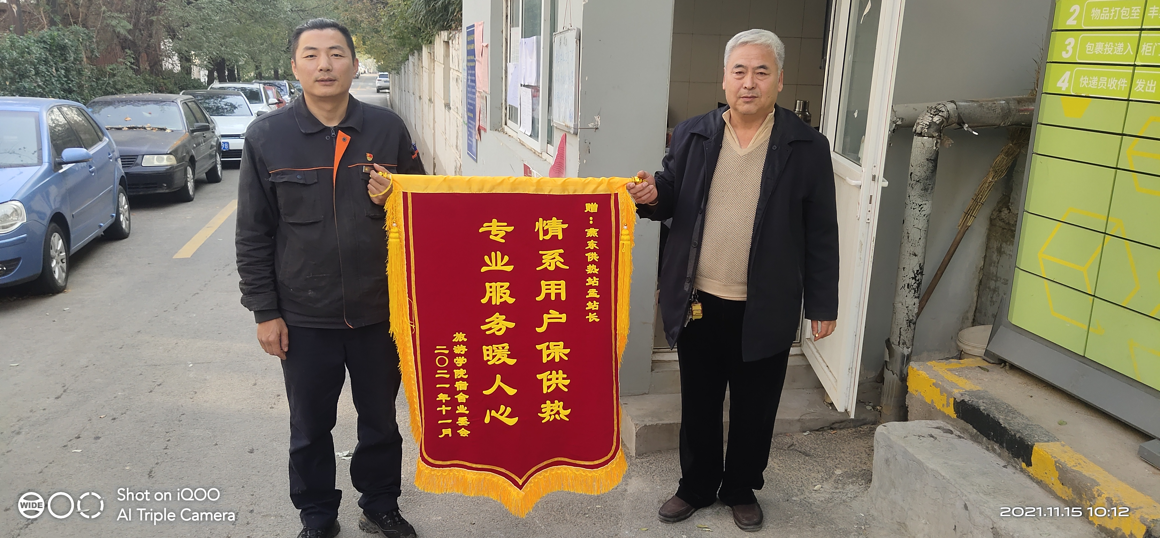 对于夜间抢修停暖一事,不少居民反映根本没有感觉到室内降温,第二天早上的室温和往常基本相同。为此,旅游学院业委会自发定制了一面写着“情系用户保供暖,专业服务暖人心”的锦旗专程送到孟凡琦的手上,以感谢他的快捷服务。