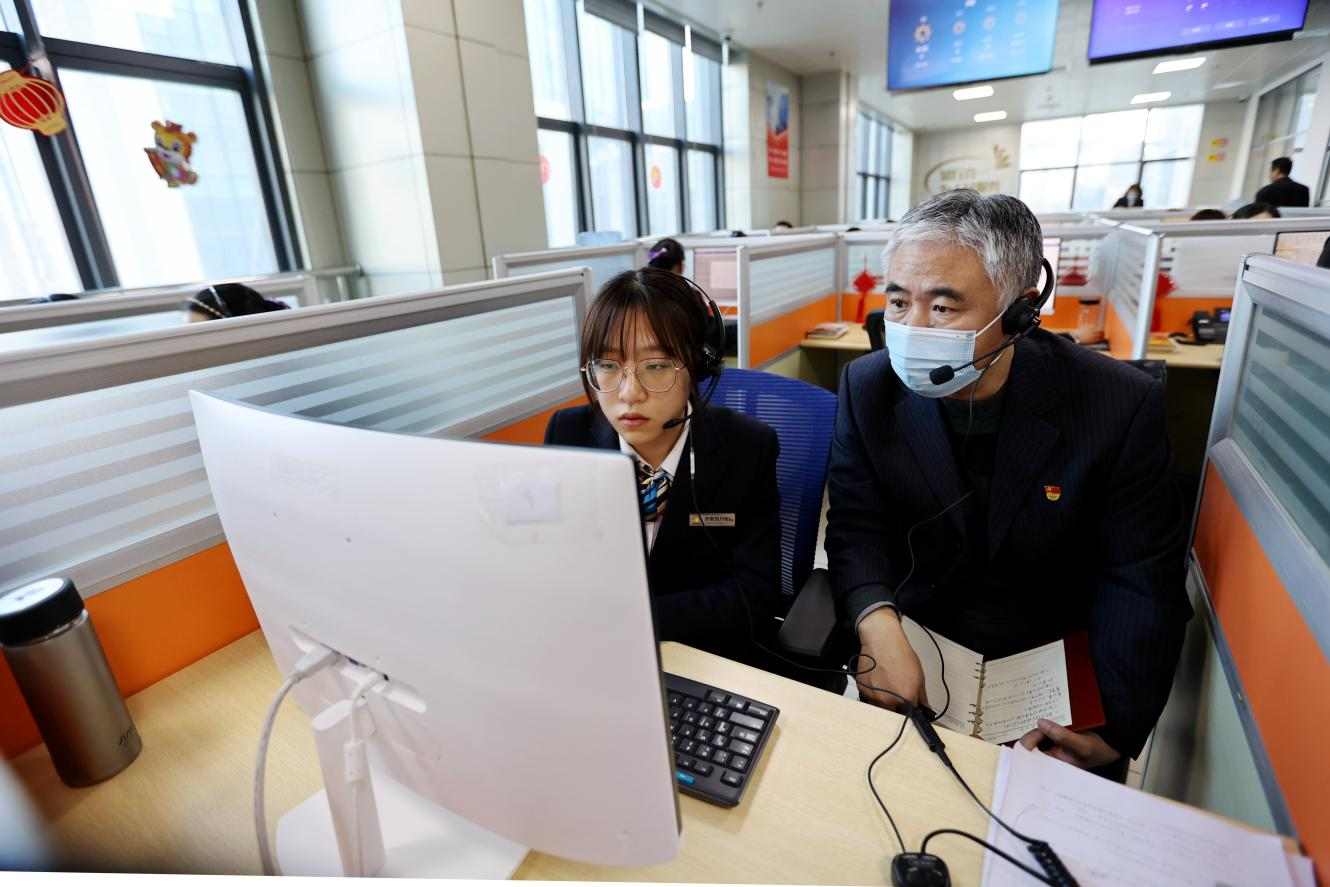 在96969热线中心,热线电话不时响起,话务员有条不紊接听处置。8213号话务员接到中铁逸都国际孙女士来电,反映家中地暖系统卧室不如客厅热,话务员按照标准处置流程,指导用户处理,并推送地暖系统不热处理视频,用户表示满意。潘世英全程旁听接听流程并对关键处理环节给予指导,随后他详细了解96969热线话务员培训及信息化建设情况。