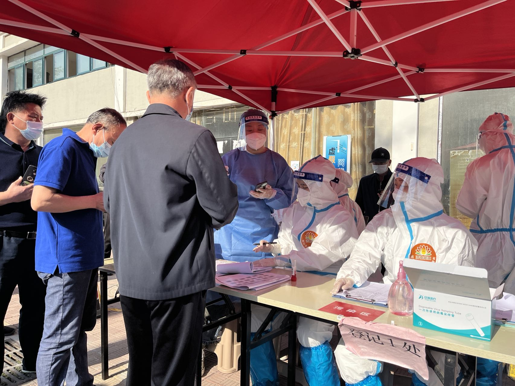 相信每一名志愿者的心中都有一股热劲,他们一大早就来到小区搭建的工作帐篷处,快速穿好防护服,“大白”核酸采样,“小蓝”维持秩序,“红马甲”发放检测贴……每个人的工作都不同。