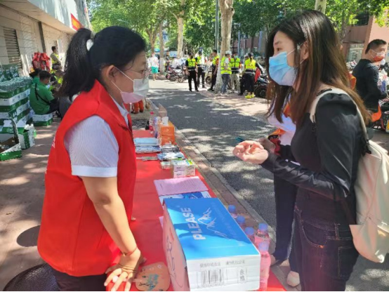 市场开发部携手市中区德胜街道社区党群中心在回民中学开展爱心助考活动。志愿者们与考生家长进行沟通交流,分享个人高考、选择专业的经历,为等候的家长提供心理辅导,帮助他们排解、舒缓心理压力和紧张情绪。