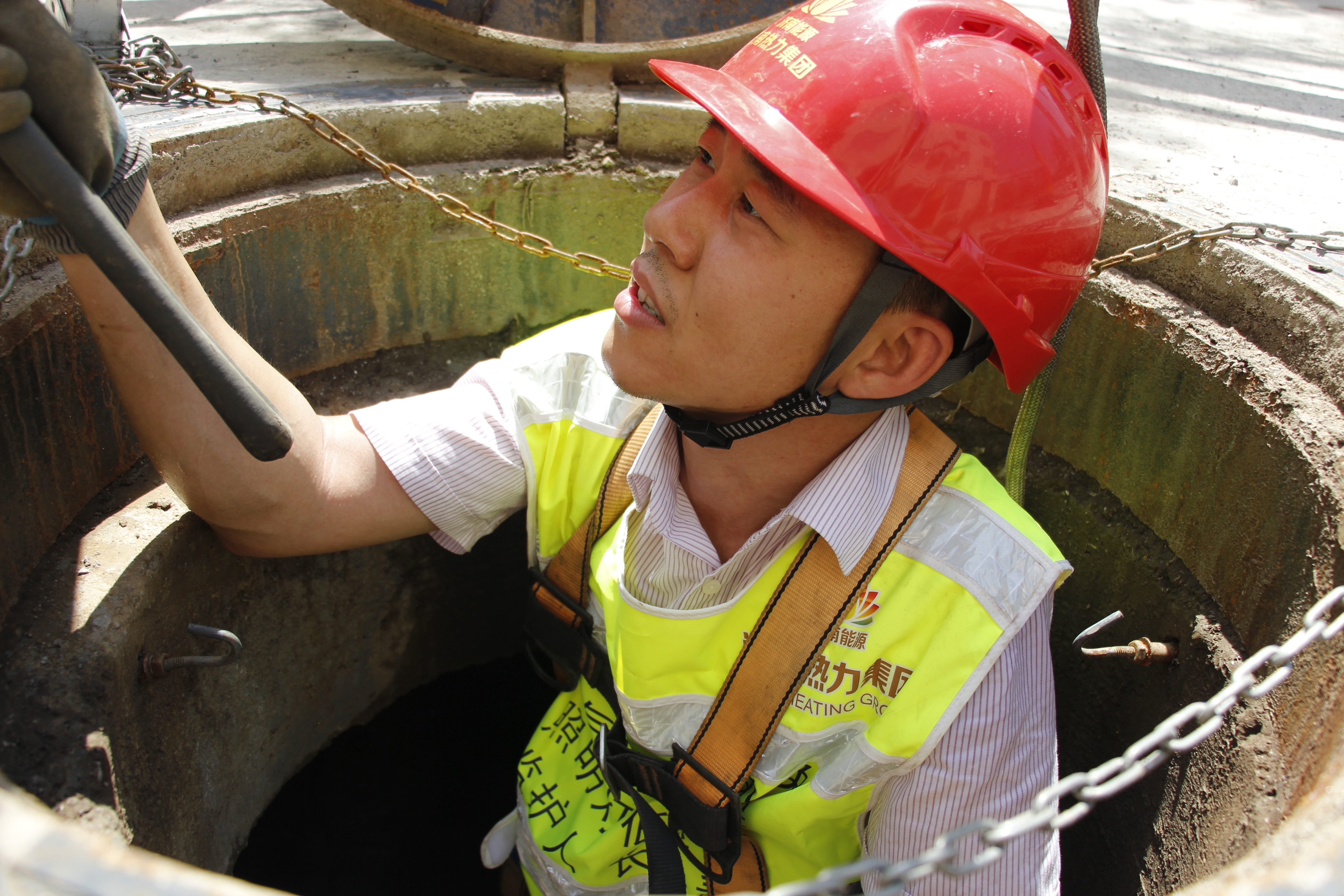 除了天气因素,井下逼仄的空间也是加大阀门保养难度的重要原因。小区内二次网的井室较小,空气污浊,下井作业尤其困难,为保证阀门保养工作的质量,和义公司专门挑选身材较瘦小的人员下井操作,他们常常在井下一呆就是几十分钟,满脸污渍、汗流浃背是能源热力人最常见的状态。