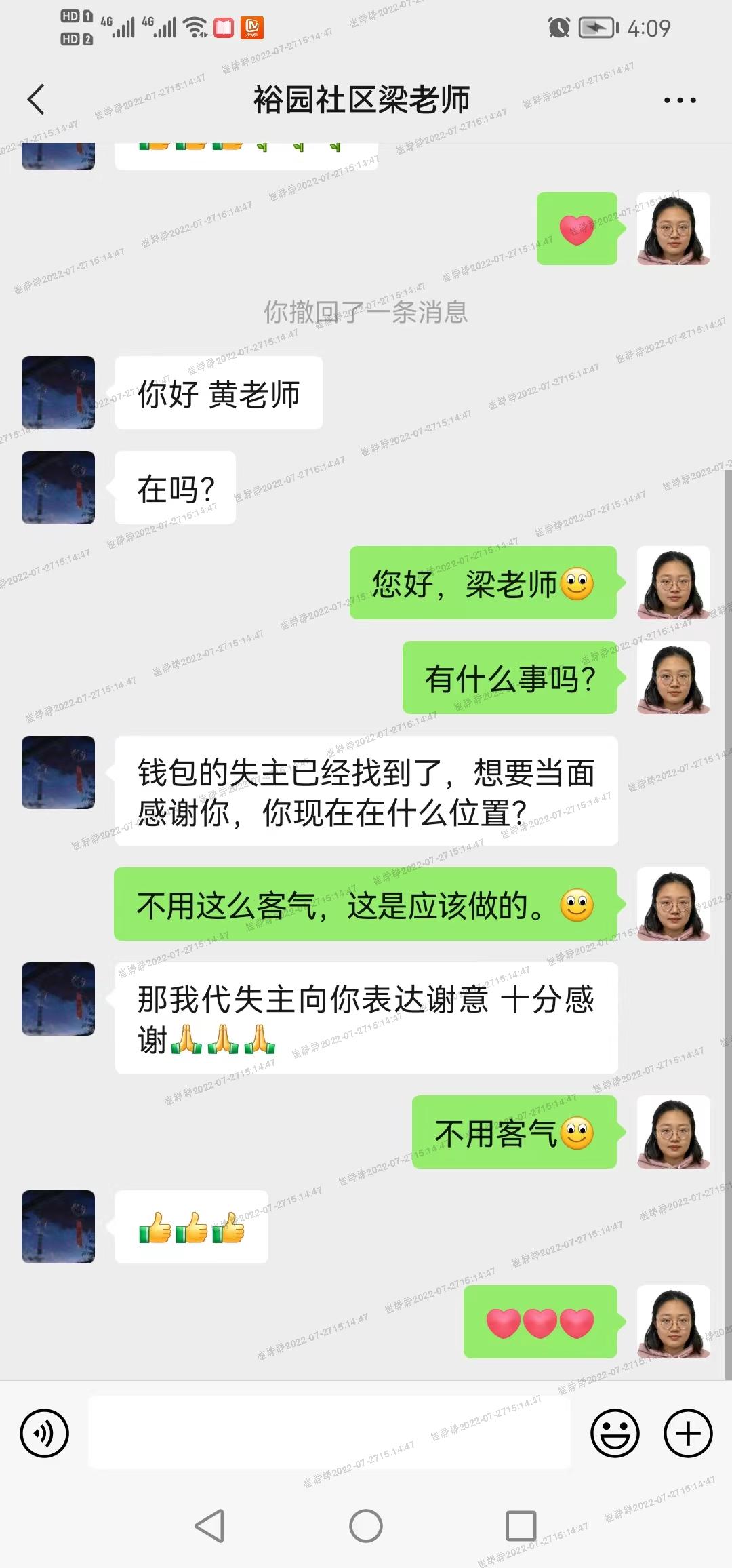 据介绍,失主李阿姨在拿回丢失的物品后想当面感谢捡到钱包的黄薇薇,可都被她简单一句“不用这么客气,这是应该做的”给婉拒了。