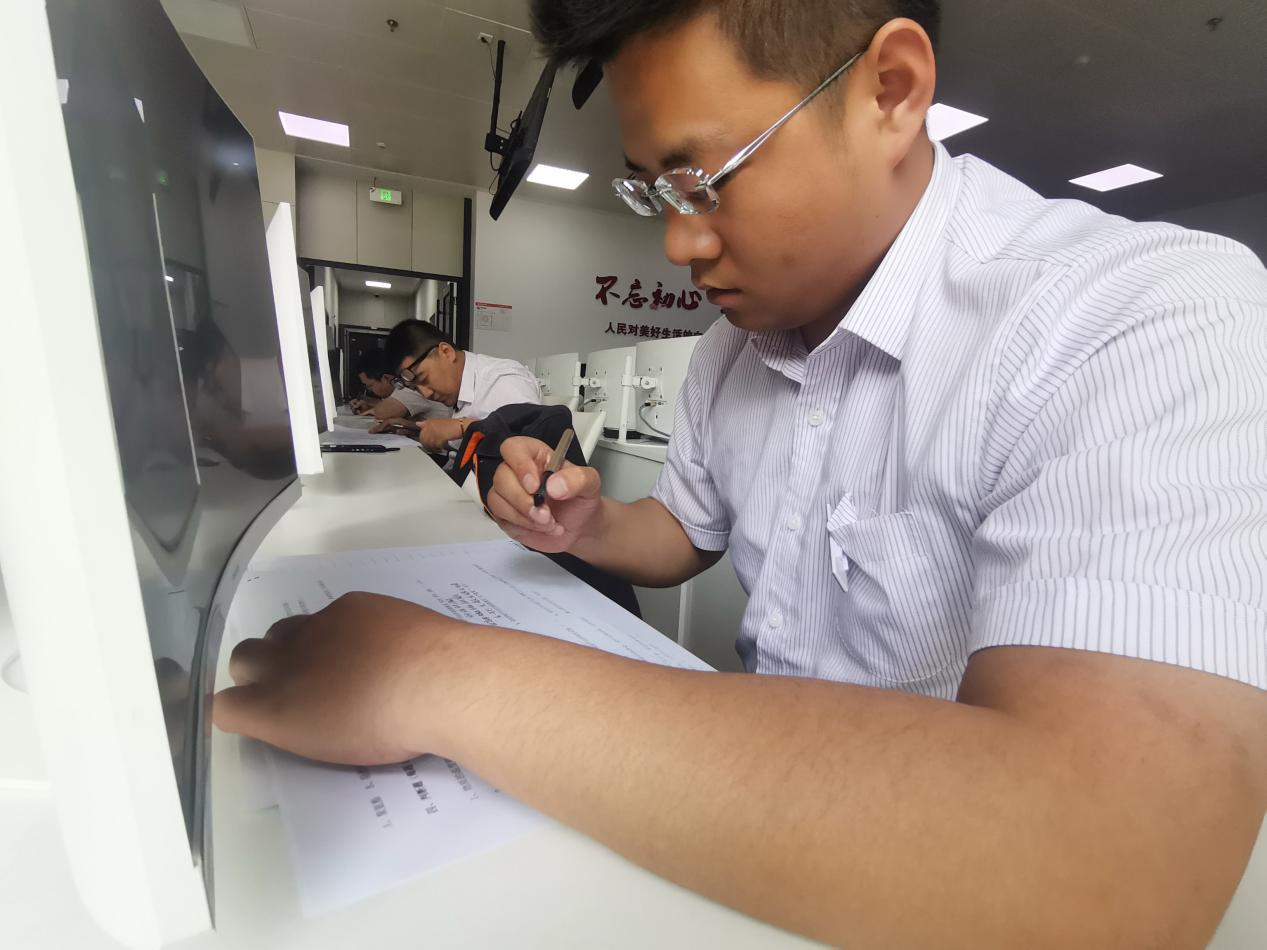 前期,各参赛选手已经做好了充足的准备和复习,此时的他们胸有成竹,认真答题,有的低头思考,有的奋笔疾书,全神贯注,聚精会神,力争赛出各自水平,试题内容除了专业知识外,考题还涉及到了企业文化等相关内容。考试过程中,2名监考人员来回巡视,考试纪律严肃。考试结束后,监考人员统一对考试试卷进行封存,最终考试成绩将跟随实操比赛成绩,按照理论考试30%和实操竞赛70%的比例合并计算总成绩。