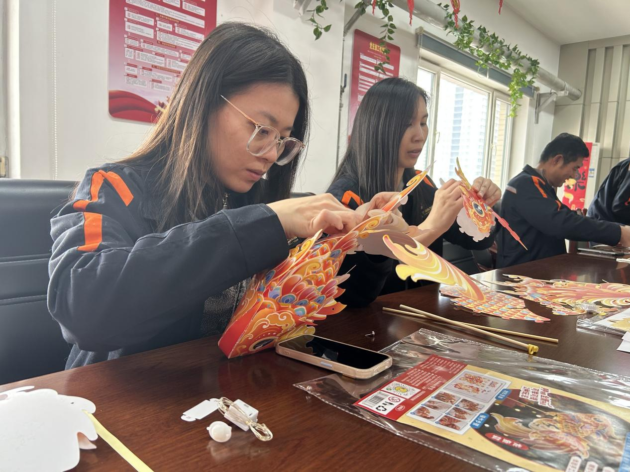 在制作灯笼的过程中,大家纷纷拿起带有吉祥如意图案的素材投入制作,仔细折叠、粘贴,认真制作灯笼框架,现场充满了欢声笑语。每一盏灯笼都凝聚着大家的专注与认真,也传递着节日的温暖与祝福。一盏盏精巧的灯笼不仅点亮了活动现场,更点亮了每个人心中对美好生活的向往。