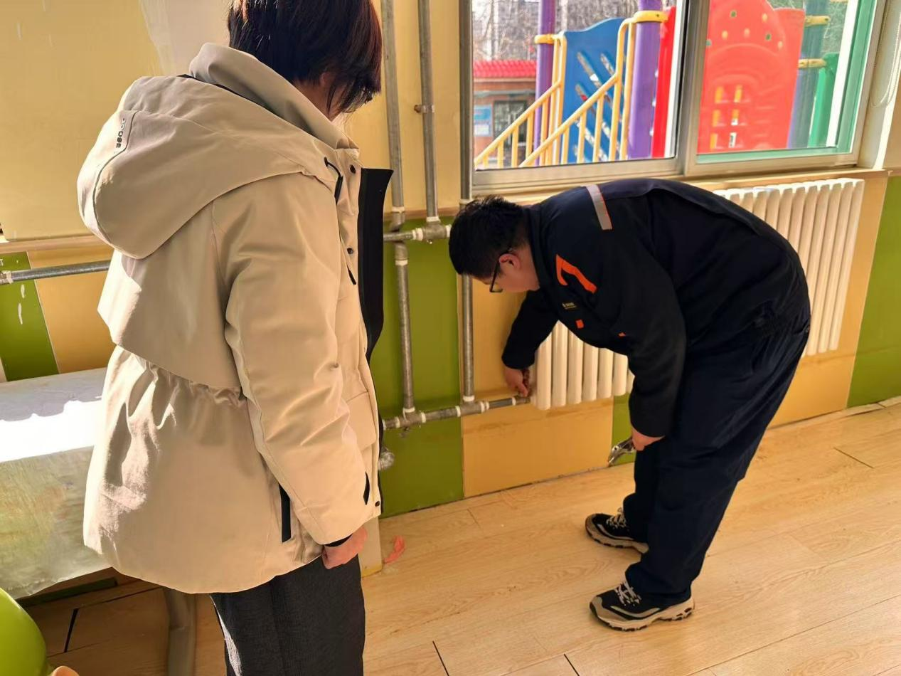 活动中,和智分公司供暖管家手提工具箱,利用学生课余时间,深入校园各个角落,重点对校内办公区域与教学场所的供热管道、阀门等用热设施进行细致的检查与维修,协助学校进行暖气片放气阀更换等工作,消除校园供热系统的隐患,确保供热设施安全稳定运行。