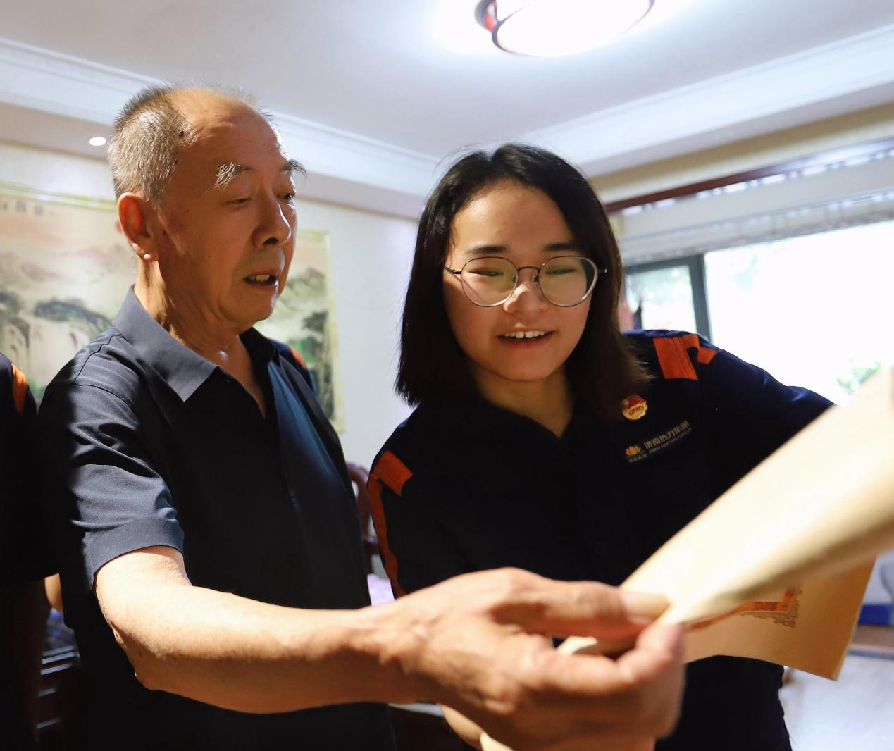 在中建锦绣城一期小区78岁的孙爷爷家中,和康分公司党员、团员见到了老人精心保管的一个木盒,里面静静躺着两枚斑驳却依旧精致的铜质纪念章,以及一张泛黄卷边的证书。老人拿起证书,指尖轻抚封面说道,“这是当年那段历史的见证,也是战场上牺牲战友的念想。”大家听老人讲述那段峥嵘岁月,内心深受触动。慰问过程中,党员、团员们详细询问了老人的身体状况和生活需求,并表示将持续关注老人的生活,常态化开展走访活动。