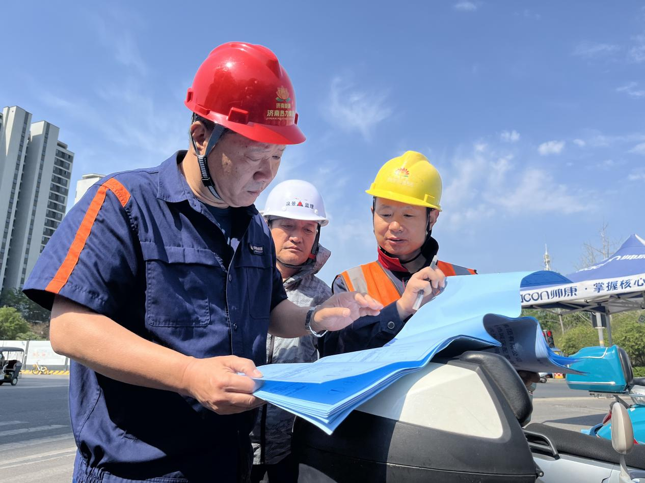 攻坚关键节点,畅通热源通道。作为实现外埠热源向济广高速以南的济南市区输送的核心基础设施,项目承接进入黄河南岸、途经裕华路北段和裕华路南段的聊热北线热源,并连接输往荷花路、小清河北路等管网。随之而来的就是一项核心难点——穿越济乐高速。为精准规避施工对高速桥的影响,确保按期完工,团队针对性采用铺设套管、顶进管道焊接等工艺,同时施工队伍增加人员与机械班次,实行 24 小时不间断作业。