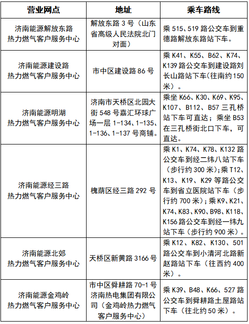 客户可到济南能源集团热力燃气客户服务中心交费,网点明细如下: