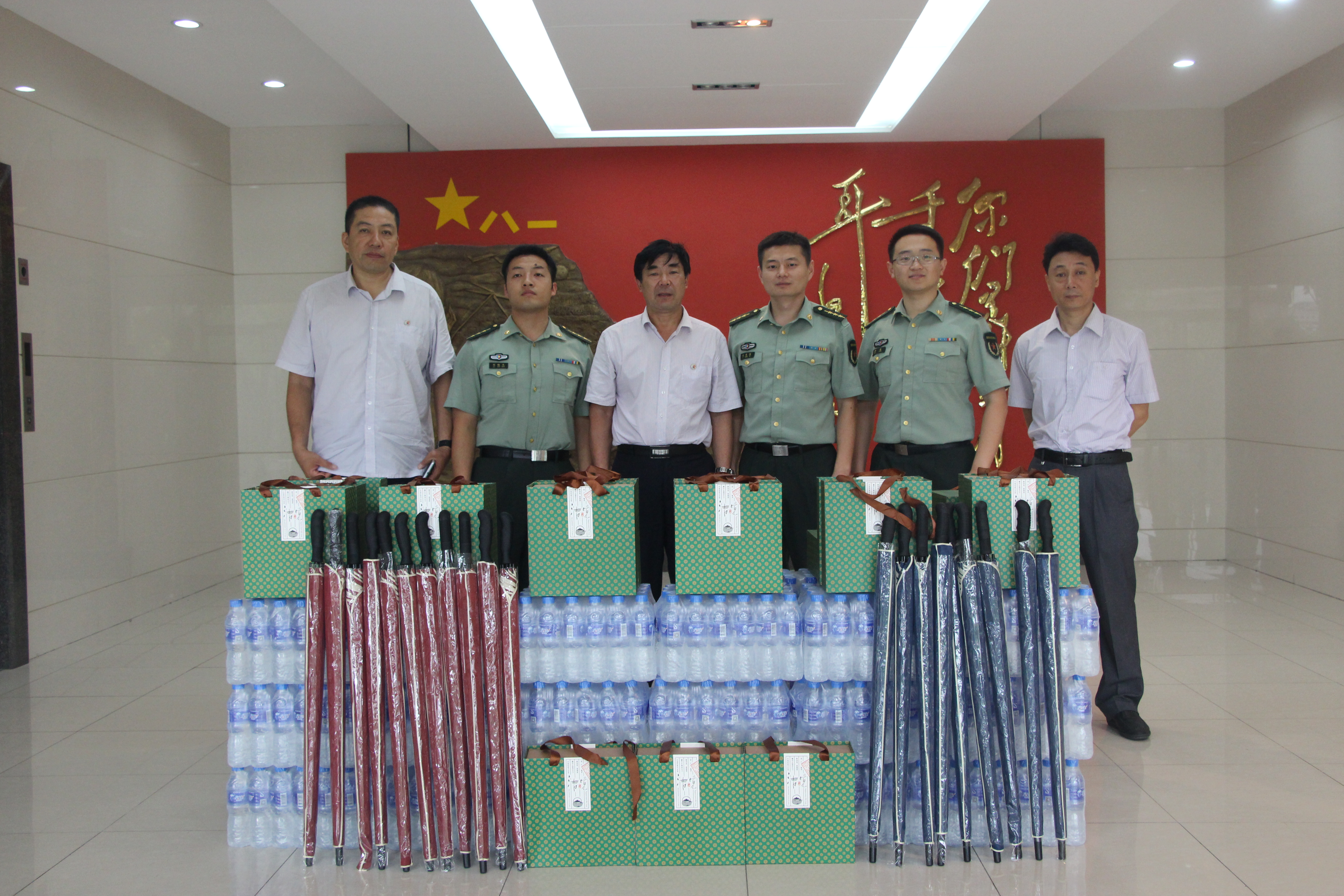 骄阳似火,酷暑难耐。近日,济南连续多天的高温天气,让人叫苦不迭,即便是行人走在马路上,阵阵热浪都能噎到人。在过不久,就是中国人民解放军建军90周年了,为认真做好双拥共建工作。7月18日上午,热力集团积极组织开展了军民共建走访慰问活动。当天上午,热力集团工会主席赵宗柱等一行5人,带着矿泉水、茶叶、雨伞等夏季清凉防暑降温物品,到山东省某通讯部队走访慰问了一线官兵。为无论是高温还是寒冷都坚持执勤训练的官兵们送去热力集团的一份关心和敬意,受到了广大官兵们的热烈欢迎。此外,在活动当天,天空正下着雨,这让原本闷热的天气更佳清爽透凉。随着降雨的光顾,这种高温天气终于可以暂时消退。同时,热力集团也想通过这些简单的防暑清凉物品给部队一线官兵提供些许基础的保障,帮助他们更好的完成执勤和训练任务。