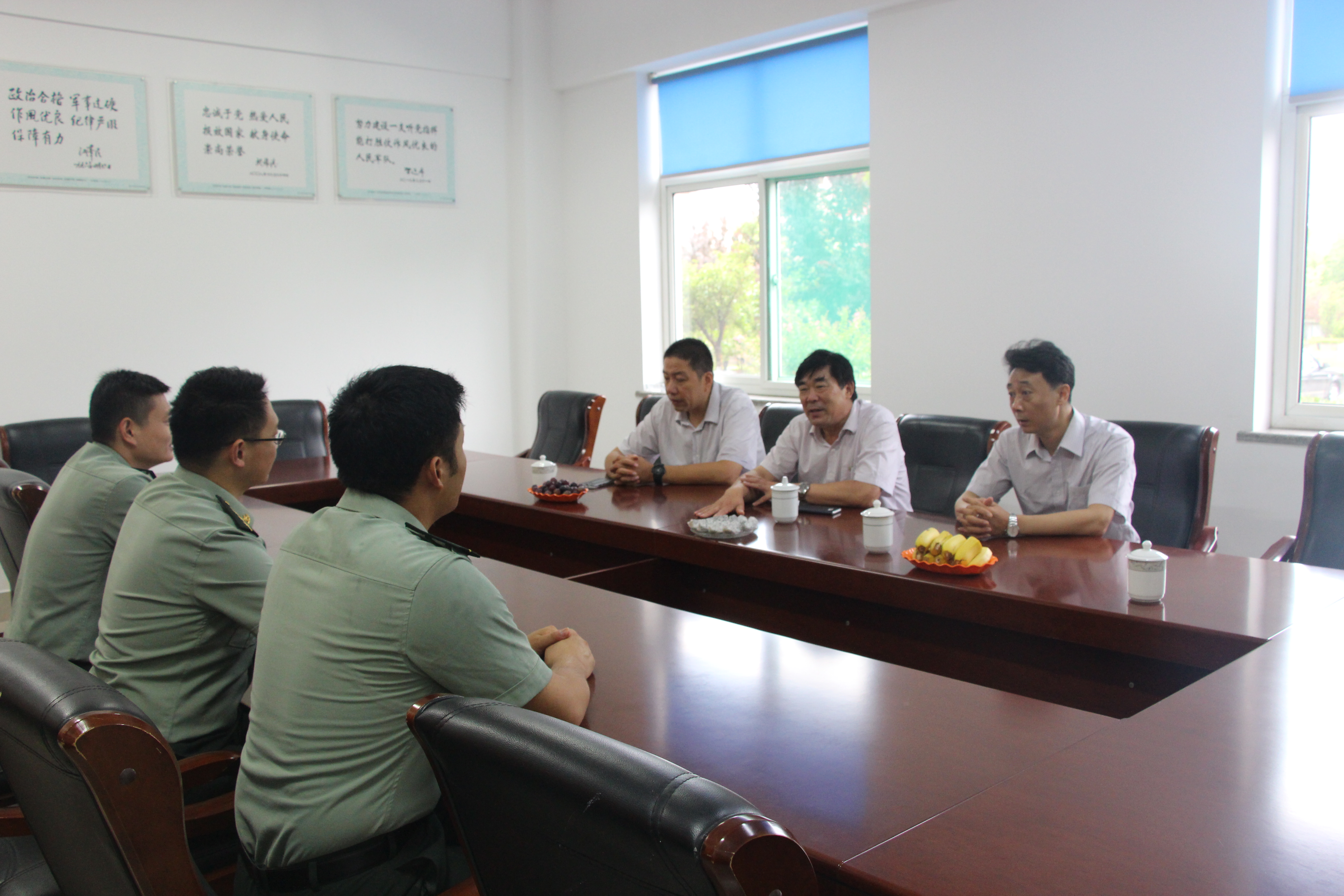近日,为认真做好双拥共建工作,热力集团在中国人民解放军建军90周年到来之际,积极开展了军民共建走访慰问活动。7月18日上午,热力集团到山东省某通讯部队走访慰问一线官兵,并代表热力集团党委向共建单位送去矿泉水、茶叶、雨伞等夏季清凉防暑降温物品,双方对进一步开展军民共建活动、军民联谊、走访慰问等方面进行了座谈交流。