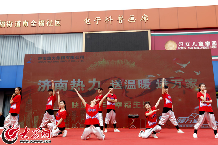 现场除了供热资讯和服务外,热力集团的职工自己编排了一场精彩的文艺演出以飨观众。一开场,舞蹈《长生军》就惊艳登场,动感明快的节奏和优美的舞姿瞬间点沸了整个社区。两首热力职工原唱歌曲《热力人最温暖的心》、《温心》,唱出了热力人温暖万家的使命,唱出了热力人为人民服务的信念。器乐合奏伴舞的《北京的金山上》悠扬悦耳,快板《夸夸咱热力年轻人》在场的观众无不鼓掌叫好。虽然天气较冷,但表演者们一丝不苟、尽心尽力将最美好的一面呈现给百姓。