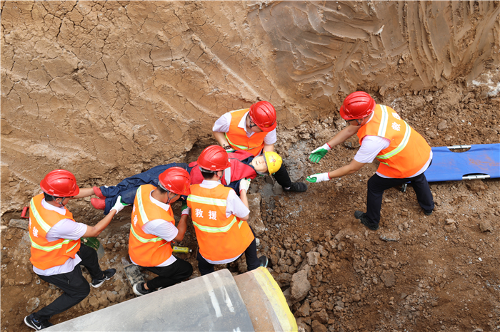 据了解,此次演练是模拟某处施工工地焊接过程中,突发沟槽坍塌事故,将槽底焊接人员淹没至胸部,手臂受伤的情况。ok138太阳集团工程公司的救援各小组成员按照沟槽坍塌专项应急预案,服从指挥、各司其职、密切配合,保证了沟槽坍塌应急抢险工作顺利完成。