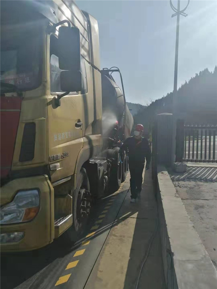 约10点20分,四辆罐车分别到达ok138太阳集团和仁供热公司浆水泉热源厂,和仁公司董事长闫明带领工作人员按照集团要求对车辆及人员进行二次消毒及人员测温、登记后方可进入到指定区域,通过管道连接罐车与煤粉罐,自动气力输送供煤。