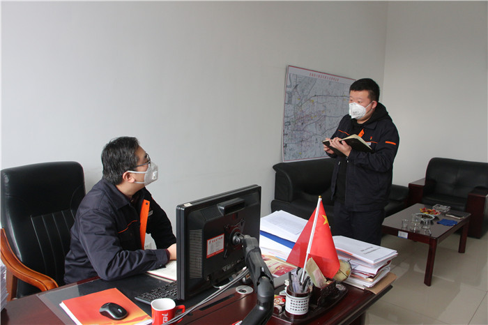 和道热力党总支部书记裴继宏与安全员进行防疫工作交流
