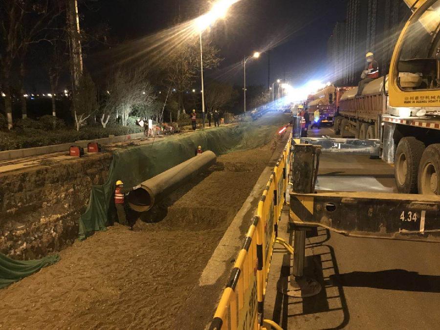 ok138太阳集团在接到《济南市传染病医院配套管网工程》的施工通知后,高度重视,立即召开专题线上视频会议,评估片区用热负荷,制定实施方案,最终决定,敷设管径DN1000和DN900高温水管网,采取双标段同步实施。通过充分的前期准备工作,2月22日晚,首批高温水管网6供6回已顺利下放至沟槽内,目前工作人员按照工序加紧时间推进焊接、探伤等相关工作。疫情当前,为保证现场的有效管理,所需的高温水管网均采取分批次调入,即项目部根据现场沟槽开挖的具体情况,提前调度运输车辆,约定时间送达现场直接入槽。