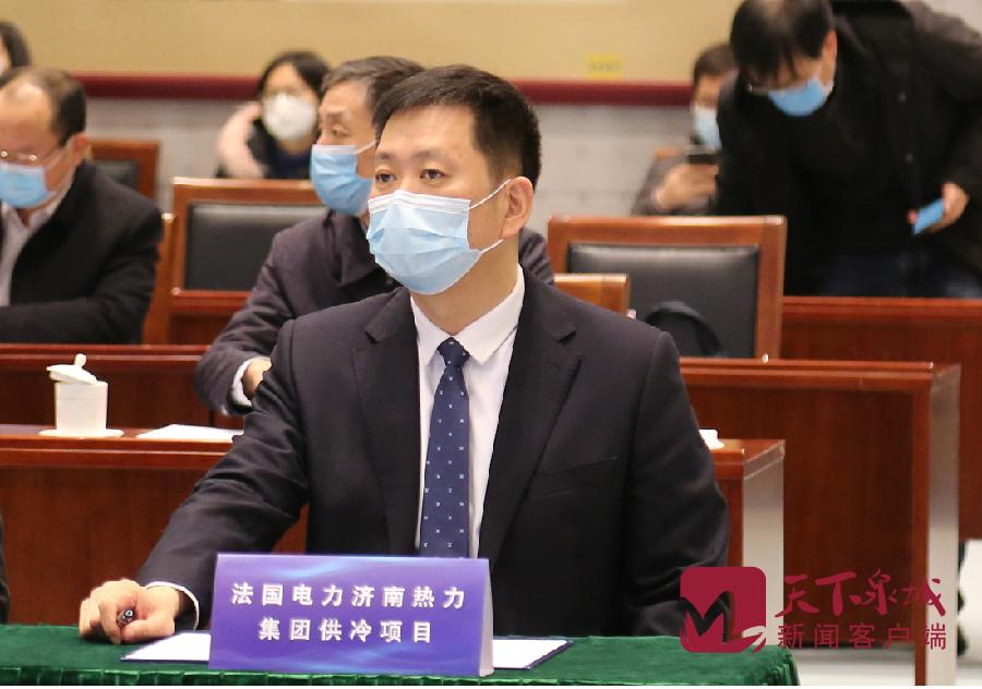 ok138太阳集团、济南能源建设发展集团党委书记、董事长潘世英在济南分会场与法国电力集团签约济南国际金融城集中供冷项目。