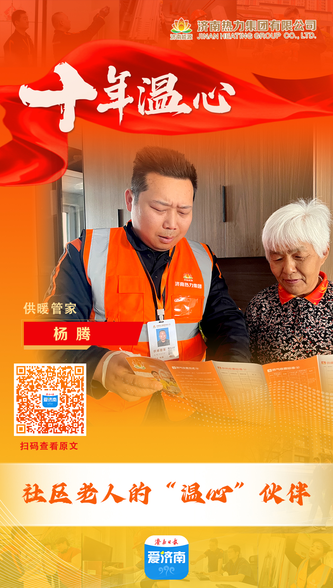 杨腾表示,他将继续坚守自己的工作岗位,用专业和真诚守护居民的温暖,做老年用户心中的贴心伙伴,也让每一个居民都能享受到温暖的冬天。